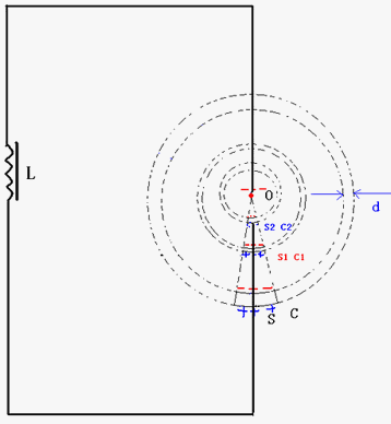 如圖12,A、B、C等處的光源發(fā)出的光線,在通過“球狀閃電”時(shí),都在“球狀閃電”中的“光子流體能量負(fù)壓”的作用下,被“吸入”“留住”作“圓周運(yùn)動(dòng)”,而不能穿過“球狀閃電”,光源對(duì)面的觀察者將不能看到這個(gè)光源發(fā)出的光線——呈現(xiàn)“黑洞效應(yīng)”。