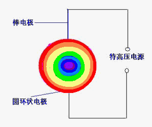 “棒電極”在球心O對(duì)“圓環(huán)狀電極”“超短時(shí)間內(nèi)的高能”(超高壓)充電、放電,可以產(chǎn)生“七彩圓盤狀閃電”,簡(jiǎn)稱為“七彩閃電”(圖8、9)。[7]