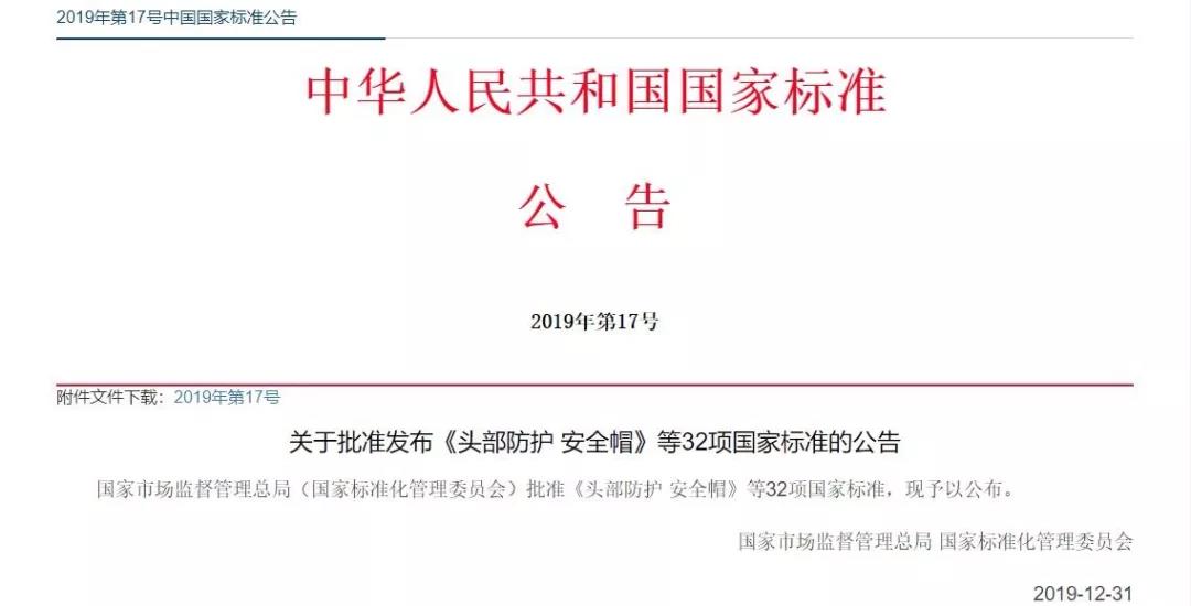 國家市場監(jiān)管總局、國家標(biāo)準(zhǔn)委批準(zhǔn)發(fā)布新版安全帽標(biāo)準(zhǔn)GB2811-2019《頭部防護(hù) 安全帽》,將于2020年7月1日起正式生效。