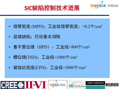 在我國,碳化硅襯底已經(jīng)從實驗室的研究走上了產(chǎn)業(yè)化的道路。以中科院物理所的技術為基礎成立的天科合達公司已成立11年,突破了具有自主知識產(chǎn)權的碳化硅晶體生產(chǎn)設備研制、微管缺陷控制、多型相變等產(chǎn)業(yè)化關鍵技術。公司主要產(chǎn)品為2、3、4英寸導電6H碳化硅晶片和2、3、4、6英寸導電4H碳化硅晶片。目前總部設在北京市海淀區(qū),與中科院物理所建有前瞻研發(fā)中心,一個生產(chǎn)基地在大興,主要從事工藝穩(wěn)定性驗證和產(chǎn)業(yè)化,產(chǎn)品為4寸和6寸碳化硅晶片;另外一個生產(chǎn)基地在新疆,主要從事晶體生長的產(chǎn)業(yè)化。