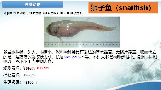 在2016年的考察中,首先對不同深度的海水波速進行測量,其次是用攝像機在海底拍攝,收集深海的動物和植物的情況,再次就是收集活的動物。我們收集到在8000米以下生活的獅子魚和鉤蝦??梢哉f,我國對深海的生物研究有發(fā)言權了。