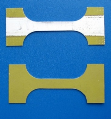 (3)安全性測(cè)試:將如圖3-4所示的經(jīng)過(guò)激光除漆和未除漆的兩組樣品分別編號(hào),采用美國(guó)MTS公司810型材料試驗(yàn)系統(tǒng)對(duì)兩組樣品首先進(jìn)行材料拉伸試驗(yàn)。在最能反映材料強(qiáng)度的抗拉強(qiáng)度一項(xiàng),除漆組樣品的平均值為399.6 Mpa,未除漆組的平均值為399.3 Mpa,兩組幾乎沒(méi)有差別。