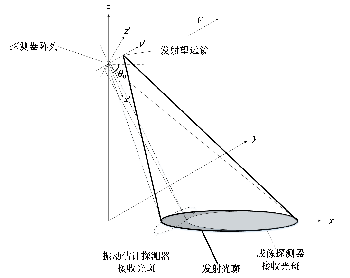 與傳統(tǒng)光學(xué)系統(tǒng)圖像概念不同,SAL獲取的圖像在斜距-多普勒頻率兩維。需要寬的接收視場(chǎng),但不要求具有高的空間角分辨率,具備采用一個(gè)或少量光電探測(cè)器實(shí)現(xiàn)激光雷達(dá)寬視場(chǎng)接收的使用條件,在原理上可用“非成像光學(xué)系統(tǒng)”。據(jù)此特點(diǎn),SAL應(yīng)可通過(guò)偏置探測(cè)器在“離焦”狀態(tài)形成重疊視場(chǎng),以進(jìn)行振動(dòng)相位誤差估計(jì),也應(yīng)可通過(guò)“散焦”擴(kuò)大瞬時(shí)觀測(cè)范圍。